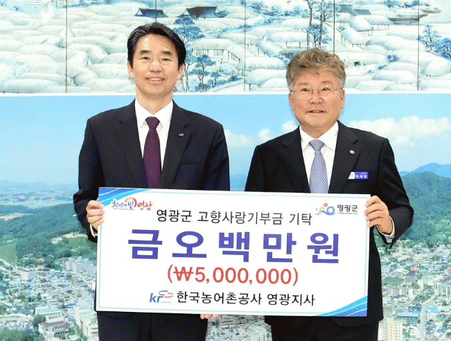 이에 영광군(군수 장세일)은 “영광군의 더 나은 내일을 위한 소중하고 따뜻한 기부에 동참해 주심에 감사하며, 모금된 기부금은 공정하고 내실 있게 사용할 것임을 약속드리겠다. 앞으로도 영광군 발전을 위해 최선의 노력을 다하겠다:”고 말했다.