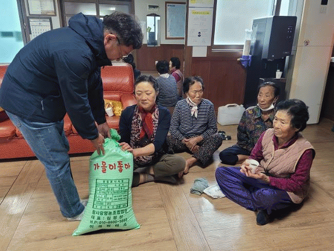 이 익명의 기부자는 “비록 작은 양이지만 평소 어려운 이웃과 경로당에 각별한 관심을 두고 있어서 도움을 주고자 기부하게 되었다”라고 소회를 밝혔다.