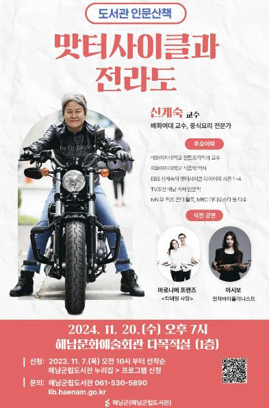 참가 신청은 해남군립도서관 누리집에서 11월 5일 오전 10시부터 할 수 있으며 선착순 200명을 모집한다.