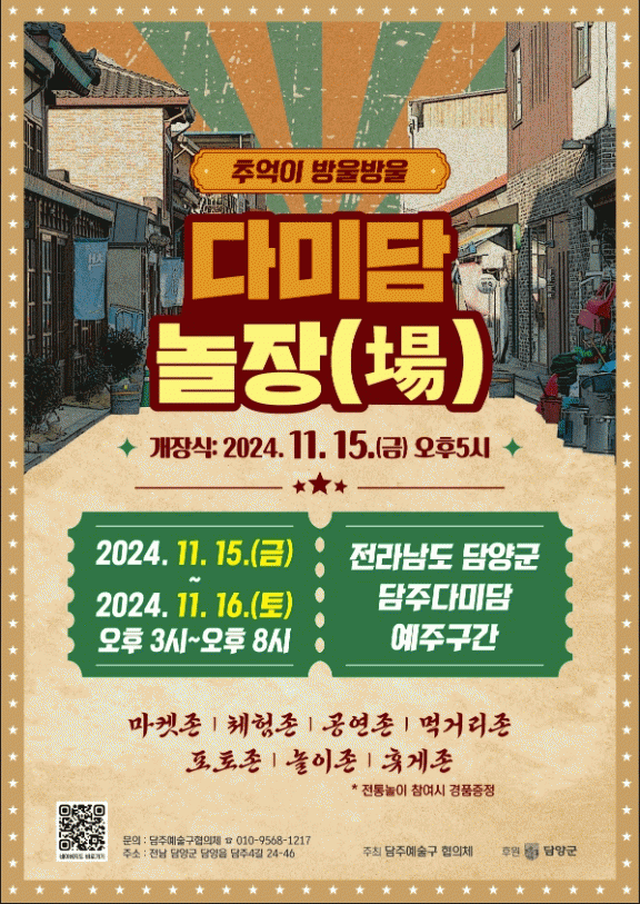이번 행사는 담주 예술구를 중심으로 입주작가, 지역상인과 군민, 관광객이 함께하는 장(場)으로 상권 활성화를 위해 담주예술구협의체가 기획해 진행한다.