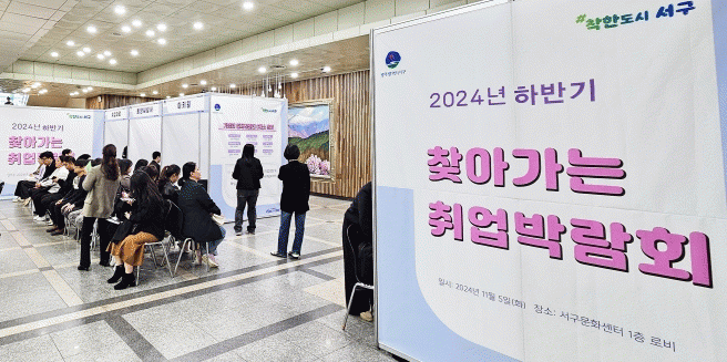 한편 서구는 찾아가는 취업박람회 개최와 더불어 지속적인 일자리 창출을 위한 의견수렴을 위해 지난 8월 취업자 간담회, 10월 채용기업 간담회를 개최하고, 서구일자리센터‘치평’을 개소하는 등 주민들의 취업기회 확대에 앞장서고 있다.