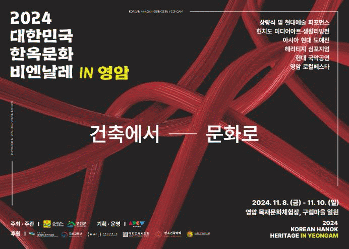 ‘건축에서 문화로’를 구호로 8일부터 10일 영암군이, 군서면 구림마을의 목재문화체험장과 도기박물관 등에서 ‘2024 대한민국 한옥문화 비엔날레’를 개최한다.