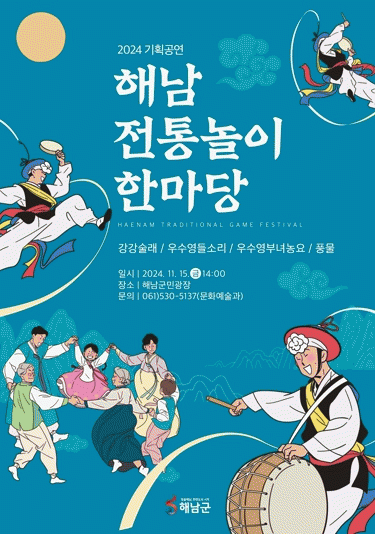 이와함께 해남출신 국악 전공자들이 활동하는 전문예술단체 해원의 풍물굿과 해남군 10개 읍면 연합풍물패 공연도 볼거리이다. 120여명이 참가하는 해남 연합풍물패는 각종 축제 등에서 합동공연을 펼치며 대규모 풍물패의 신명나는 한마당으로 가득 채울 예정이다.