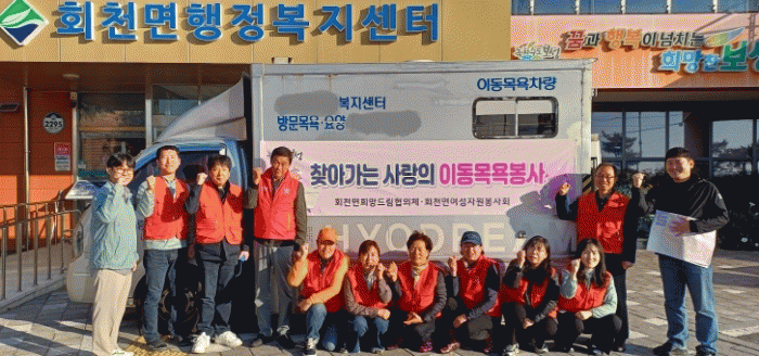 이날 회천면 희망드림협의체와 회천면 행정복지센터는 방문 요양(목욕) 서비스 미수혜 및 거동이 불편한 어르신 총 16명을 대상으로 이동 목욕차를 댁내로 직접 이동해 어르신들에게 목욕 서비스를 제공했다.