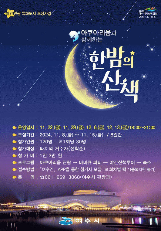 여수시가 준비한 이번 야간관광 상품은 문화체육관광부 ‘야간관광 특화도시 조성’ 공모사업의 일환으로 진행된 프로그램이다.