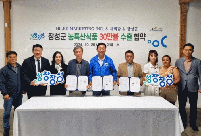 새벽팜이 ‘하이리 마케팅’ 본사와 30만 불 규모 계약을 맺은 데 이어, 한남체인 플러톤점은 장성군과 300만 불 규모 농특산식품 수출협약을 체결했다.