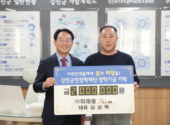 강진군민장학재단에 꾸준한 장학금 기탁을 통해 지역 인재들에게 꿈과 희망을 심어주고 있다.