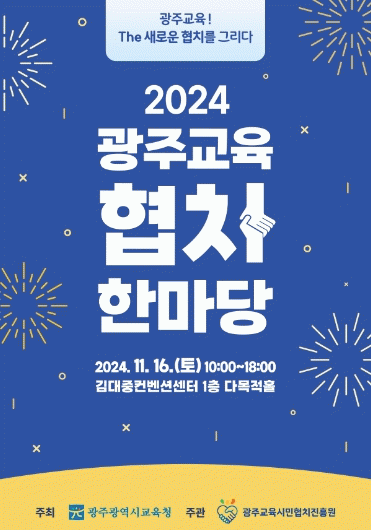 광주교육시민협치진흥원은 오는 16일 김대중컨벤션센터 1층 다목적홀에서 학생, 학부모, 교직원, 광주시민이 참여하는 ‘2024년 광주교육 협치한마당’을 개최한다.