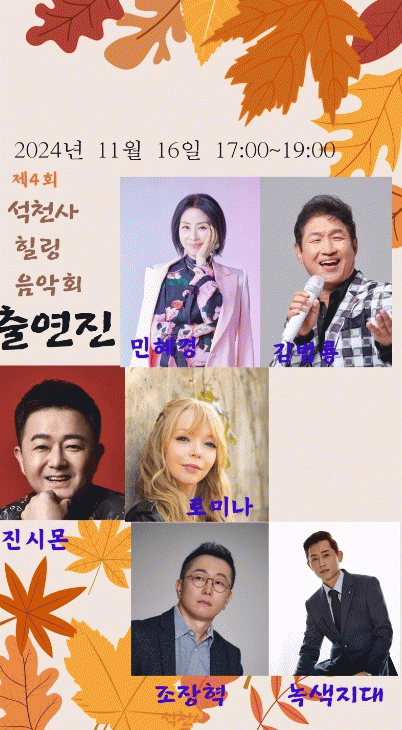 강삼영 문화예술과장은 “많은 분이 이번 석천사 산사음악회를 통해 지친 일상에 활력을 얻고 힐링의 시간을 되시길 바란다”라고 말했다.