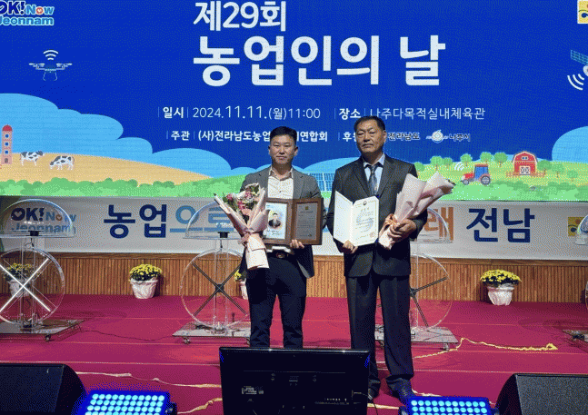 ‘농업인 대상’ 수상자(유통가공 부문)는 엔자임팜 김주호 대표(44세, 과역면)로, 김 대표는 지역농산물을 활용한 다양한 가공 제품을 개발하고, 수출을 통해 농산물의 가치를 높이는 데 크게 기여한 공로를 인정받아 전라남도지사 표창을 받았다. 특히, 고흥유자와 고흥쌀 등을 활용한 ‘아빠랑’ 제품을 개발하여 특허를 등록하고, 현재 6개국에 농산물을 수출하고 있다. 김 대표는 “지역농산물의 가공 및 수출을 통해 고흥농산물의 우수성을 널리 알리는 데 더욱 힘쓰겠다”며 수상 소감을 밝혔다.