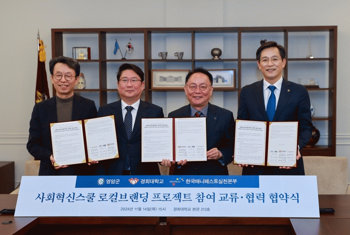 지역소멸 대응, 로컬브랜딩 활성화 등을 위한 이날 협약에 따라, 경희대 학생들은 내년 상반기 1개월 동안 영암군을 찾아 ‘사회혁신스쿨 시범사업’으로 영암군 상권 활성화 방안을 찾는다.