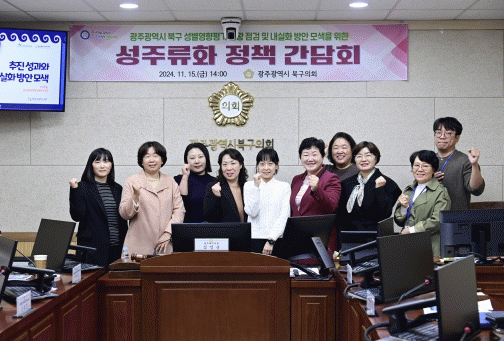 김 의원을 비롯해 광주여성가족재단 성별영향평가센터 연구원, 광주여성민우회 대표, 여성친화도시 시민참여단장, 북구청 여성보육과장 등이 참여하여 우수사례를 청취하고 성주류화 정책 역량강화를 위한 성인지교육 확대 및 부서 전문인력 양성 등의 필요성에 대한 의견을 나눴다.