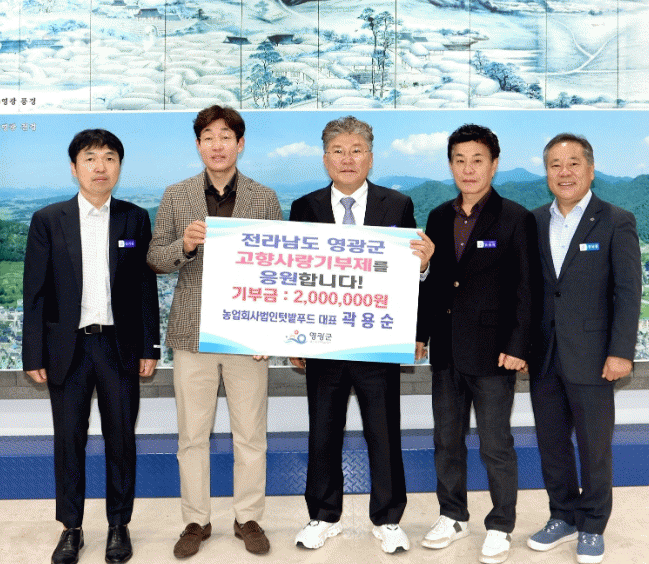 이번 기부 행사를 마친 후 곽용순 대표는 “영광군 발전과 취약계층 이웃들에게 도움을 주고 싶은 생각을 막연히 했었는데 이번 고향사랑기부를 통해 작게나마 도움을 줄 수 있어 기쁘고 앞으로도 학생들이 건강하게 자라고 올바른 식습관을 배울 수 있도록 노력하겠다”고 말했다.