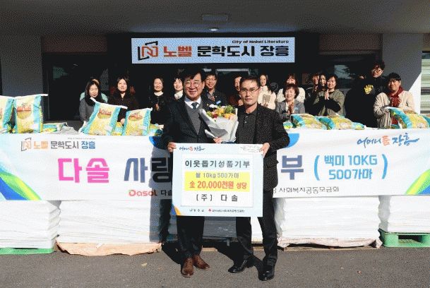 ㈜다솔은 장흥 바이오식품산업단지 1호 입주 기업으로 2017년부터 매년 장흥군 저소득층을 위해 쌀을 기탁하고 있다.