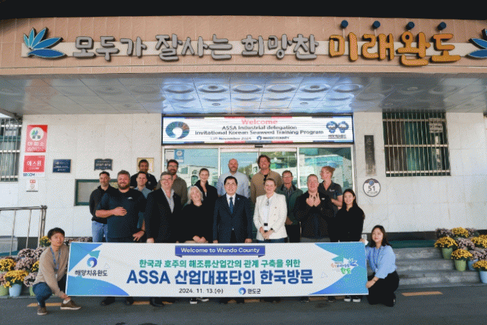군 관계자에 따르면 지난 13일 ASSA 산업대표단의 Jo Kelly 대표 등 관계자 15명이 완도의 해조류 양식장과 관련 시설을 방문했다고 밝혔다.