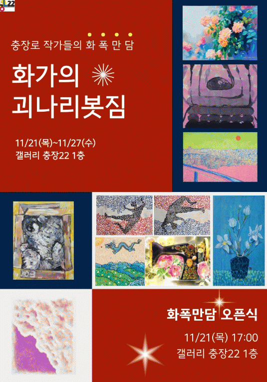 임택 동구청장은 “이번 전시를 통해 갤러리 충장22가 충장 상권의 예술 발전과 문화 발전의 주춧돌로써 동력을 만드는 화폭만담의 장이 되기를 기대한다”고 말했다.