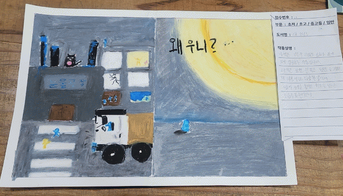 대상에는 소복이 작가의 그림책 ‘왜 우니?’를 표현한 중·고등부문의 전북 고창군 공음중 유지원 학생의 작품이 선정됐다.