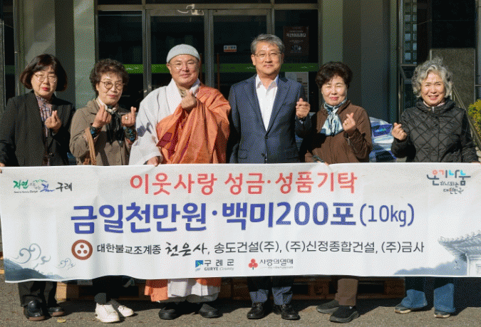 천은사 대진 스님은 “작은 정성이 추운 겨울 어려운 이웃에게 희망의 불씨가 되길 바란다”며 “특히 어려움을 겪는 농민들에게도 작은 위로가 됐으면 좋겠다”고 말했다. 이어 “앞으로도 복지 사각지대에 놓인 이웃들을 돕는 일을 지속하겠다”고 밝혔다.