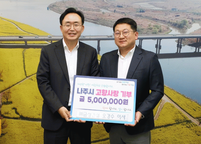 윤병태 나주시장은 "㈜금성건설 오종순 대표님과 오경수 이사의 지속적인 나눔 활동에 깊은 감사를 드린다“며 ”소중한 기부금은 나주의 더 나은 미래를 위해 알차게 사용하겠다“고 말했다.