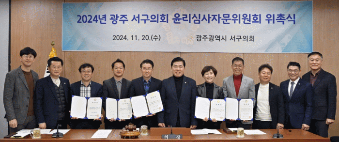 윤리심사자문위원회는 교수, 법조인, 지방자치전문가 등 민간위원 7명으로 구성했으며 위원장에는 안태기 광주대 교수가, 부위원장에는 이은주 전 서구의회 부의장이 각각 선출됐다.