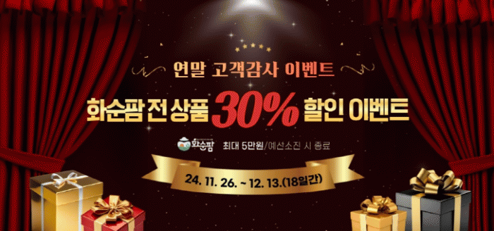 댓글 이벤트는 올해 가장 고마웠던 사람에게 감사 인사를 댓글로 남기거나, 상품 구매 후 후기를 남긴 회원 중 추첨을 통해 10명을 선정, 화순팜 적립금을 지급한다.