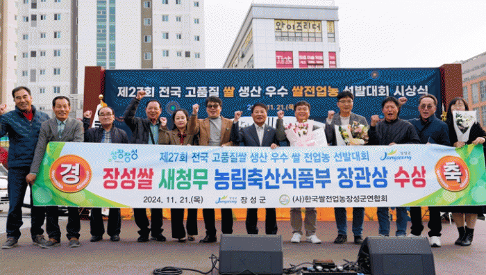 한편, 앞선 2일부터 4일까지 농협 수원유통센터에서 열린 ‘제33회 전국으뜸농산물 한마당대회’에 장성군 안평쌀 브랜드 ‘장성엔(N)산소미’를 출품한 남균명 씨(남면, 글로벌장성영농법인)도 농림축산식품부 장관상을 수상한 바 있다.