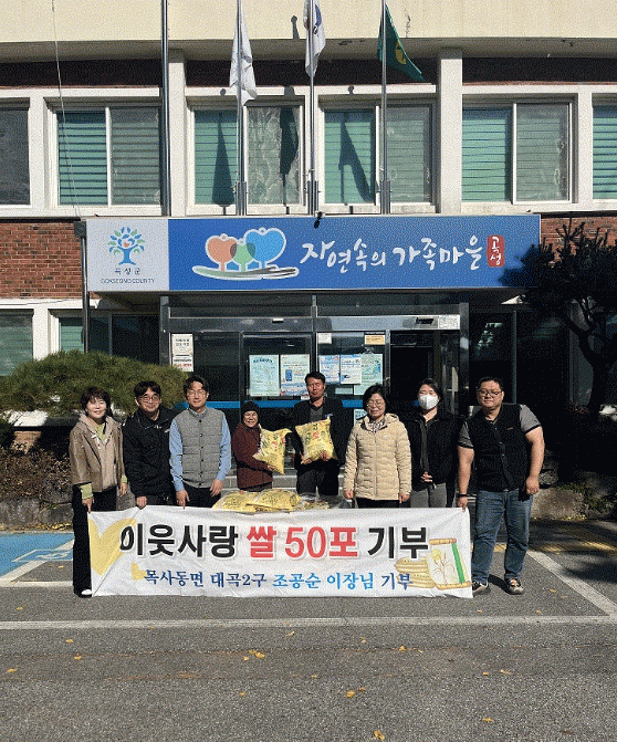 박광천 목사동면장은“매년 겨울이 다가오면 잊지 않고 쌀 기부를 해주시는 조공순 이장님께 진심으로 감사드린다.”고 전했다.