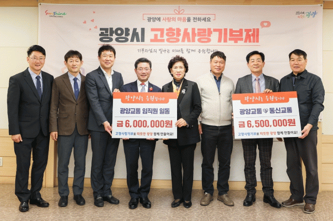 한편 광양교통은 내달 순천시를 방문해 광양교통 임직원 65명의 마음을 담은 고향사랑 기부금 650만 원을 전달할 예정이다.