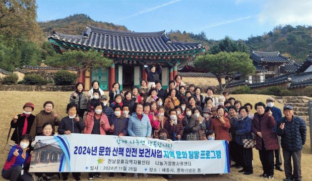 장흥군의 지원을 받아 진행하는 ‘2024년 문화 산책 안전보건 사업’은 지역문화탐방 2회, 보건 안전 소독용품지원 2회, 정서지원 목공체험 3회 등 총 7회에 걸쳐 실시할 예정이다.