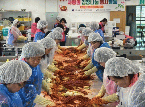 이날 활동에 참여한 생활개선회 회원들은 아침 일찍부터 모여 배추와 양념을 정성껏 준비하며 김장을 담갔다.
