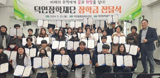 김양희 덕연동장은 “덕연장학재단은 설립 이후 지금까지 약 650명의 학생들에게 장학금을 지원하며, 전국적에서도 보기 드문 행정복지센터 단위 장학재단으로 자리매김했다”며, “한 해도 빠짐없이 장학금을 지급하며 지역사회를 따뜻하게 만들어주신 모든 분들께 감사드린다”고 말했다.
