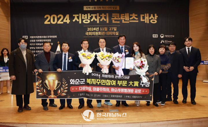 화순군은 복지주민참여 부문에서 ▲전국 최초 자국민 전담 다문회팀 ▲전국 최초 마을주치의 제도 ▲전국 최초 화순사평빨래방 운영을 통해 사업의 주민 참여 제고와 거주민 복지 증진에 크게 이바지했다는 호평을 받았다.