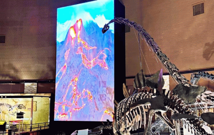 가로 5미터, 높이 10미터 크기의 LED 스크린은 호남 권역의 박물관에서는 최대 규모로, 편당 5분 내외의 몰입도 있는 디지털 영상 3편을 상영해 관람객들이 알로사우루스가 살았던 공룡시대를 경험할 수 있도록 하고 있다.