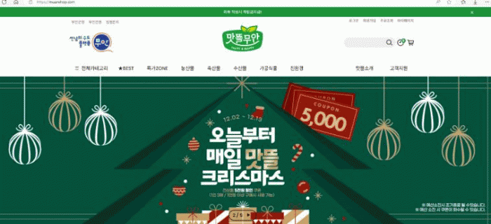 ‘오늘부터 매일 맛뜰 크리스마스!’라는 이름으로 펼쳐지는 이번 이벤트는 12월 2일부터 13일까지, 1만 원 이상 구매 시 5천 원 할인쿠폰을 1인당 3매 제공된다.