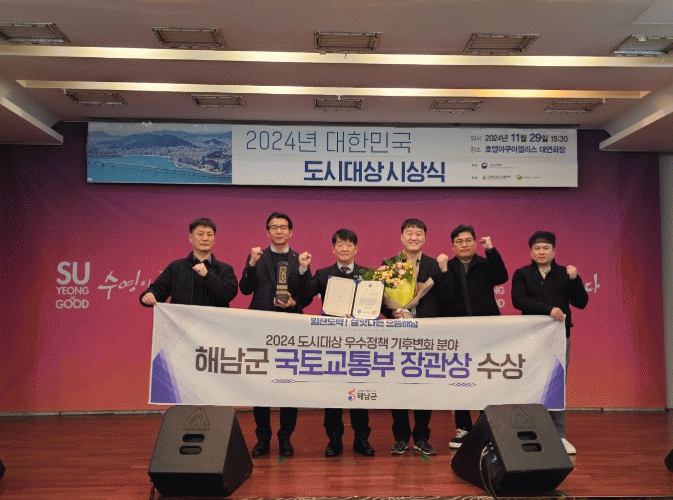 군 관계자는“지속가능한 도시정책의 추진이 좋은 성과를 거두면서 이번 대한민국 도시대상 2년연속 수상의 결실을 맺었다”며“앞으로도 군민 누구도 소외받지 않고 다 같이 누릴수 있는 안전하고 편안한 도시, 해남군을 만들기 위해 지속적으로 노력하겠다”고 전했다.