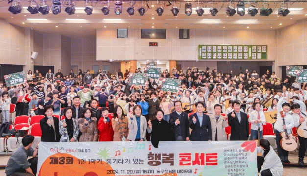 이번 콘서트는 동구가 올해 관내 10개 초등학교 5학년 576명을 대상으로 운영한 ‘통기타가 있는 행복교실’의 수업 종료를 기념하기 위해 마련됐다.