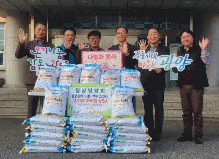 권회상 광양읍장은 “지역 주민 가까이에서 따뜻한 사랑을 실천하고 있는 단체에 감사드린다”며 “김장 봉사부터 지역 위기 해소까지 매년 발 빠르게 대응해 주고 있는 단체가 있어 든든하다. 받는 것보다 나누는 것이 더 행복한 광양읍 만들기에 동참해주시기를 부탁드린다”고 말했다.
