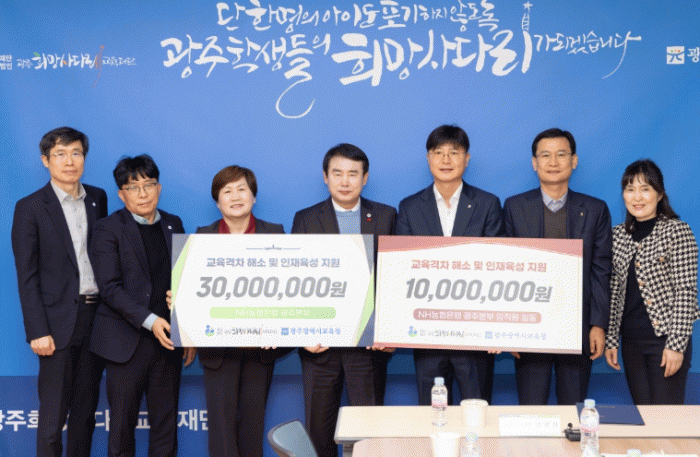 NH농협은행 광주본부 박내춘 본부장은 “이번 기부금이 광주학생들이 공부하는데 조금이나마 도움이 되길 바란다”며 “지역에서 활동하는 기관으로써 사회적 책무를 다하도록 최선을 다하겠다”고 밝혔다.