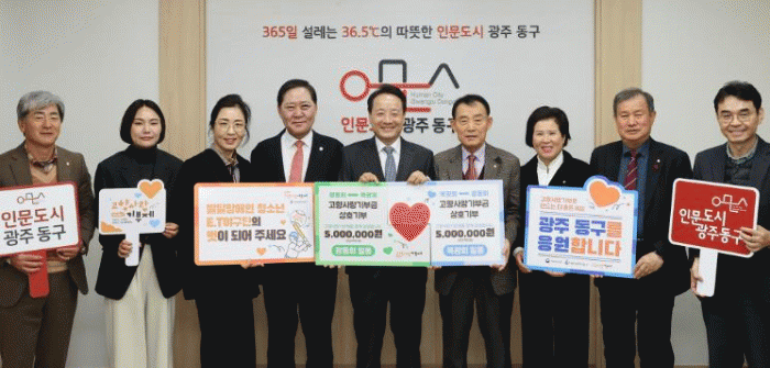 동구는 최근 조현주 남광주한의원장(동구 한의사협회 회장)을 비롯해 김영 한국여성경제인연합회 전남지회장과 김 회장의 배우자인 박승현 영진종합건설 회장, 광주 북구를 사랑하는 모임 ‘북광회’ 등이 각각 5백만 원을 기부했다고 밝혔다.