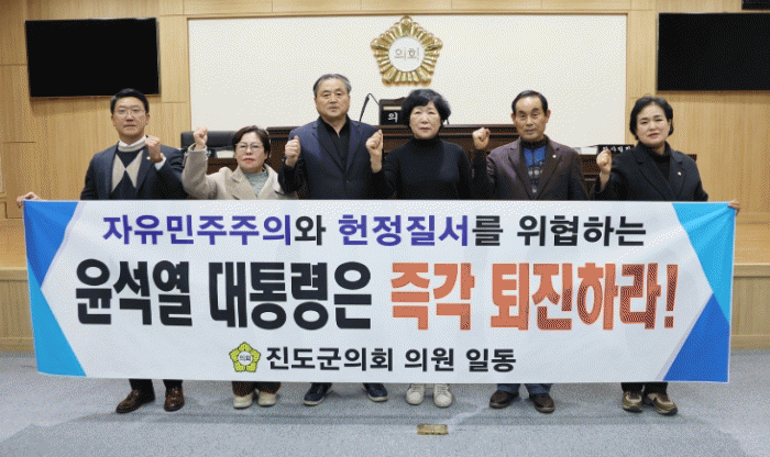 진도군의회는 4일 성명을 통해, “비상계엄령은 국가안보와 질서유지를 위해 극히 예외적으로 발동되어야 하나, 이번 계엄령이 명백한 정치적 목적을 위해 국민의 자유를 억압하고 헌정질서를 붕괴시키는 도구가 되고 말았다”며, “자신의 권력을 강화하려는 수단으로 위헌적인 비상계엄을 선포한 윤석열 대통령을 강력히 규탄하며, 퇴진을 촉구한다”고 목소리를 높였다.