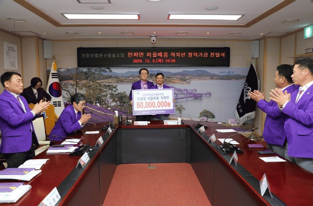 김경호 반장은 “퍼플배롱 양묘 사업으로 얻은 수익을 지역사회에 기여하는 데 함께 마음을 모아준 조합원들에게 깊이 감사드린다”라며, “이번 장학기금이 신안군 학생들의 꿈을 이루고 미래를 준비하는 데 작은 보탬이 되길 바란다”라고 기탁 소감을 밝혔다.