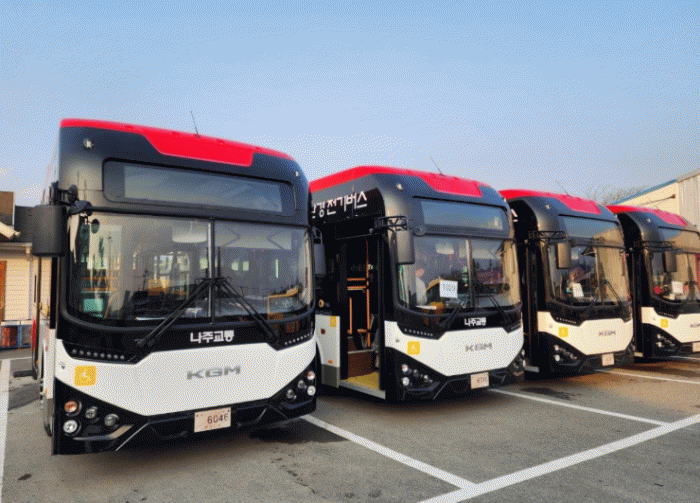 5일부터 운행에 들어갈 42인승 전기 저상버스는 국내 전기버스 제조업체인 KGM커머셜의 ‘KGC090’ 모델이며 정부 인증 무공해 차량으로 등록된 지 약 2주 만에 나주시가 최초로 도입하는 것이다.