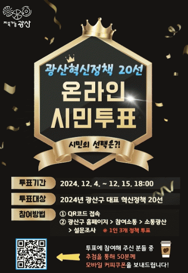 온라인 시민 투표는 광산구정에 관심이 있는 시민 누구나 광산구 누리집(참여소통→소통광산→설문조사)해 참여할 수 있다.