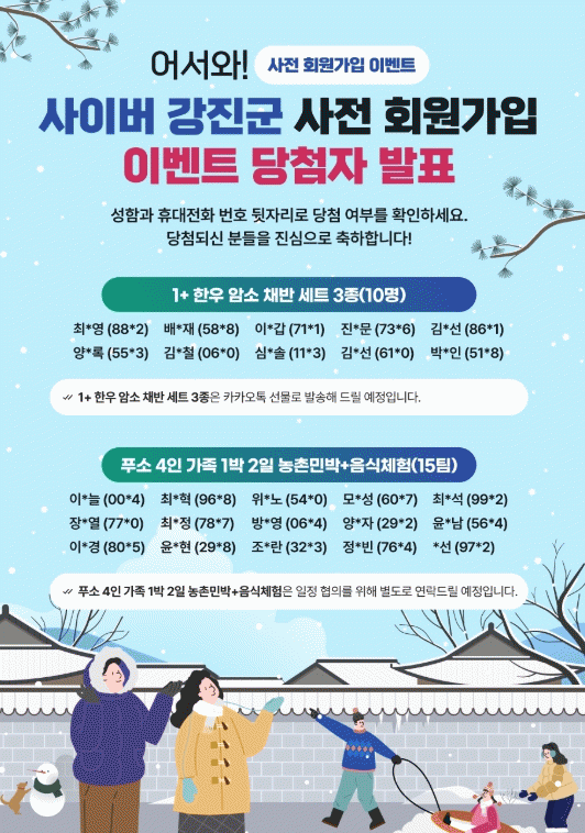 당첨자는 강진군청 홈페이지 공지사항에서 이를 확인할 수 있다.