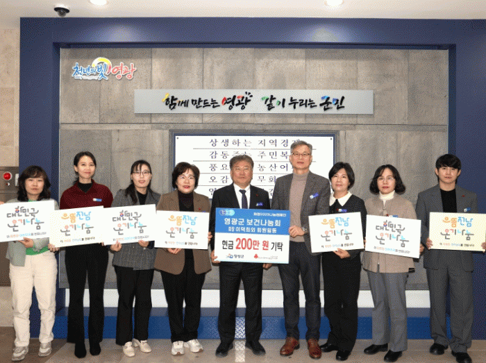 영광군 관계자는 “작년에 이어 올해도 잊지 않고 성금을 기탁해 준 영광군보건나눔회 회원들에게 감사드리고, 모든 군민이 건강하고 행복한 삶을 누릴 수 있도록 적극적인 보건행정 업무를 추진해 주기 바란다”라고 말했다.