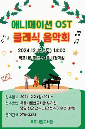 공연신청은 지난 2일 목포시통합도서관 누리집에서 사전에 이뤄졌으나 당일 현장 접수도 4층 시청각실 입구에서 진행된다.