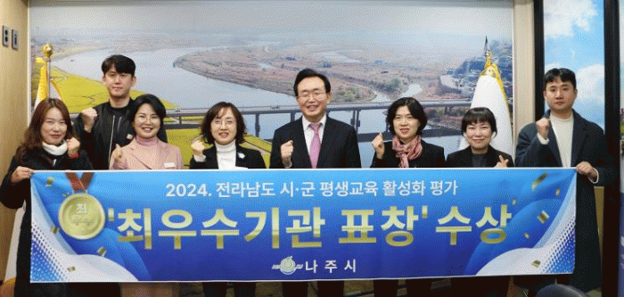 나주시는 전라남도에서 주관한 ‘2024년 시군 평생교육 활성화 평가’에서 최우수기관 표창을 수상했다고 11일 밝혔다.