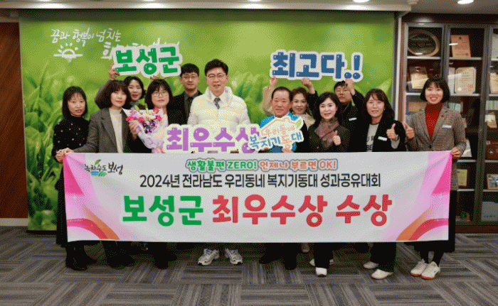보성군 우리동네 복지기동대는 13개 대 198명으로 구성돼 올 한 해 동안 529건의 생활안정자금지원 및 생활불편개선사업을 추진했으며, 특히 이번 평가에서 복지 사각지대 발굴, 민관협력, 복지기동대 앱 활성화 부분에서 높은 점수를 받았다.