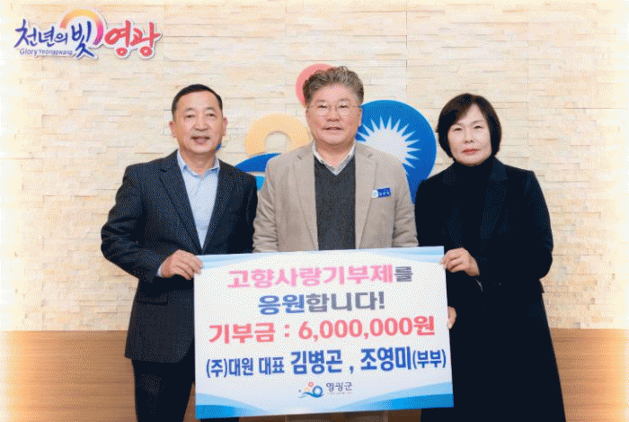 기탁 행사 후 김병곤, 조영미 대표 부부는 “영광군 고향사랑기부제의 활성화에 기여할 수 있는 뜻깊은 기부에 동참할 수 있어 기쁘고 이번 기부가 어려운 시기에 조금이나마 마음 따뜻한 소식이 되었으면 하고 앞으로도 영광군과 고향사랑기부제에 관심을 가지고 취약계층 이웃들에게 도움이 될 수 있도록 노력하겠다.”고 말했다.