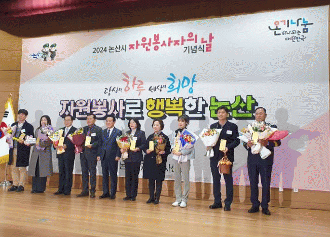 이날 기념식에서는 광양시를 포함해 수해복구를 위해 도움의 손길을 내민 자원봉사센터, 단체, 기업이 재난재해 자원봉사 유공 논산시장 감사패를 수상했다.